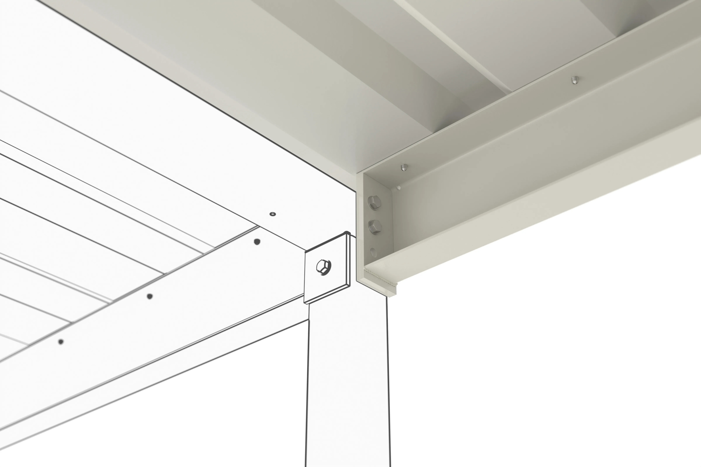 Bausatz mit leicht verständlicher Montageanleitung zur Eigenaufstellung aus genormten Flachdach-Grundsystem mit Wänden aus Trapezblech.In Verbindung von Grund- und Erweiterungseinheiten, sowie durch die Möglichkeit, Rück- und Seitenwände aus Trapezblech einzusetzen, ergibt sich eine Vielzahl an Verwendungsmöglichkeiten - offen, halboffen oder geschlossen. Die praktische Profilblech-Eindachung besitzt eine dreiseitige, geschraubte Blende und leitet Regenwasser nach hinten ab. Regenrinnen und Fallrohre sind auf Wunsch erhältlich.