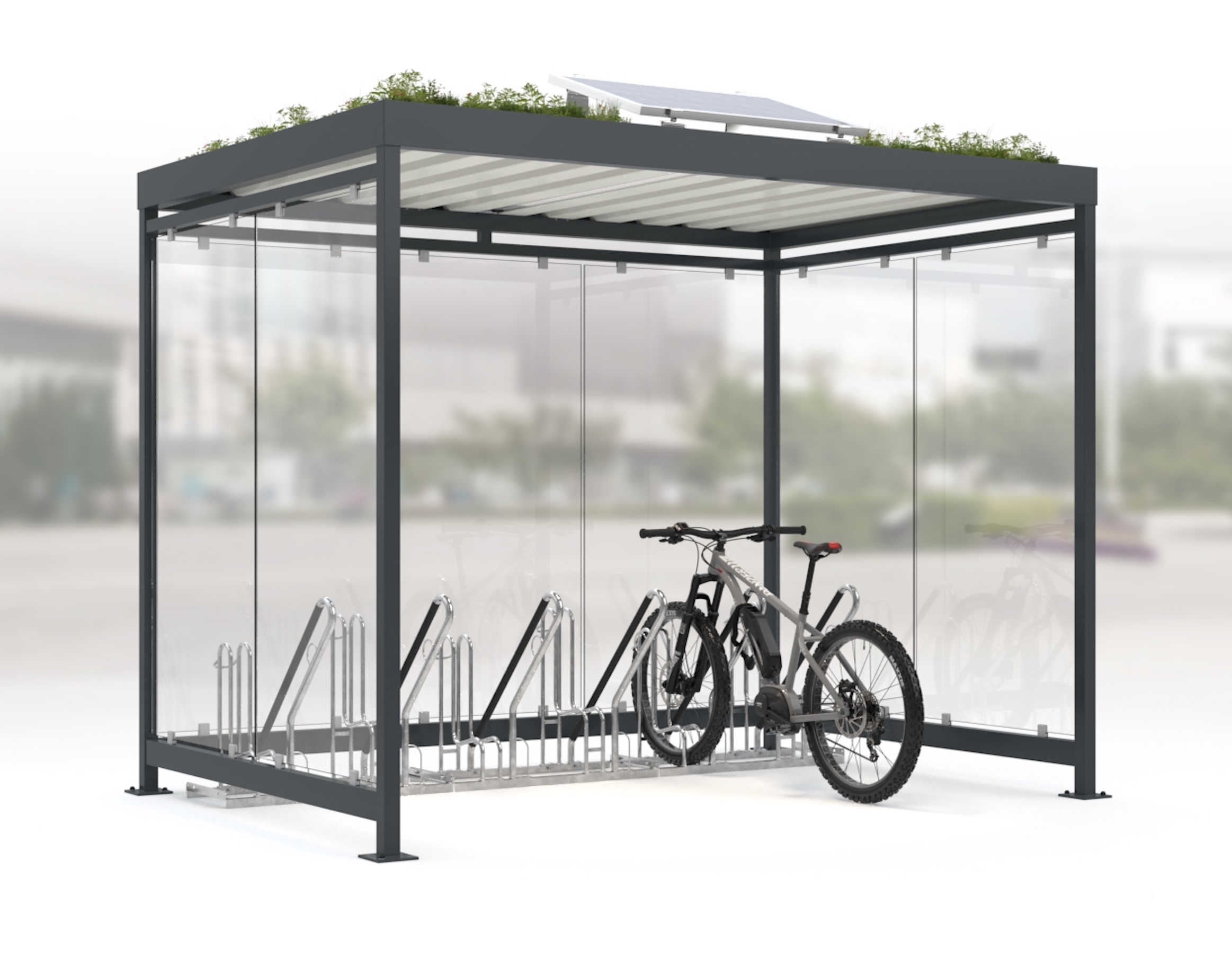 Charge during the day, illuminate at night - the InLight+ integrates seamlessly into the trapezoidal sheet metal of the roof structure and is vandal-proof. Thanks to energy-efficient LED lighting with an intelligent presence detector, it saves energy, dims when not in use and lights up all night in winter. The photovoltaic system (VersoVolt) on the roof powers the lighting autonomously, without the need for ground work for a power grid connection.
