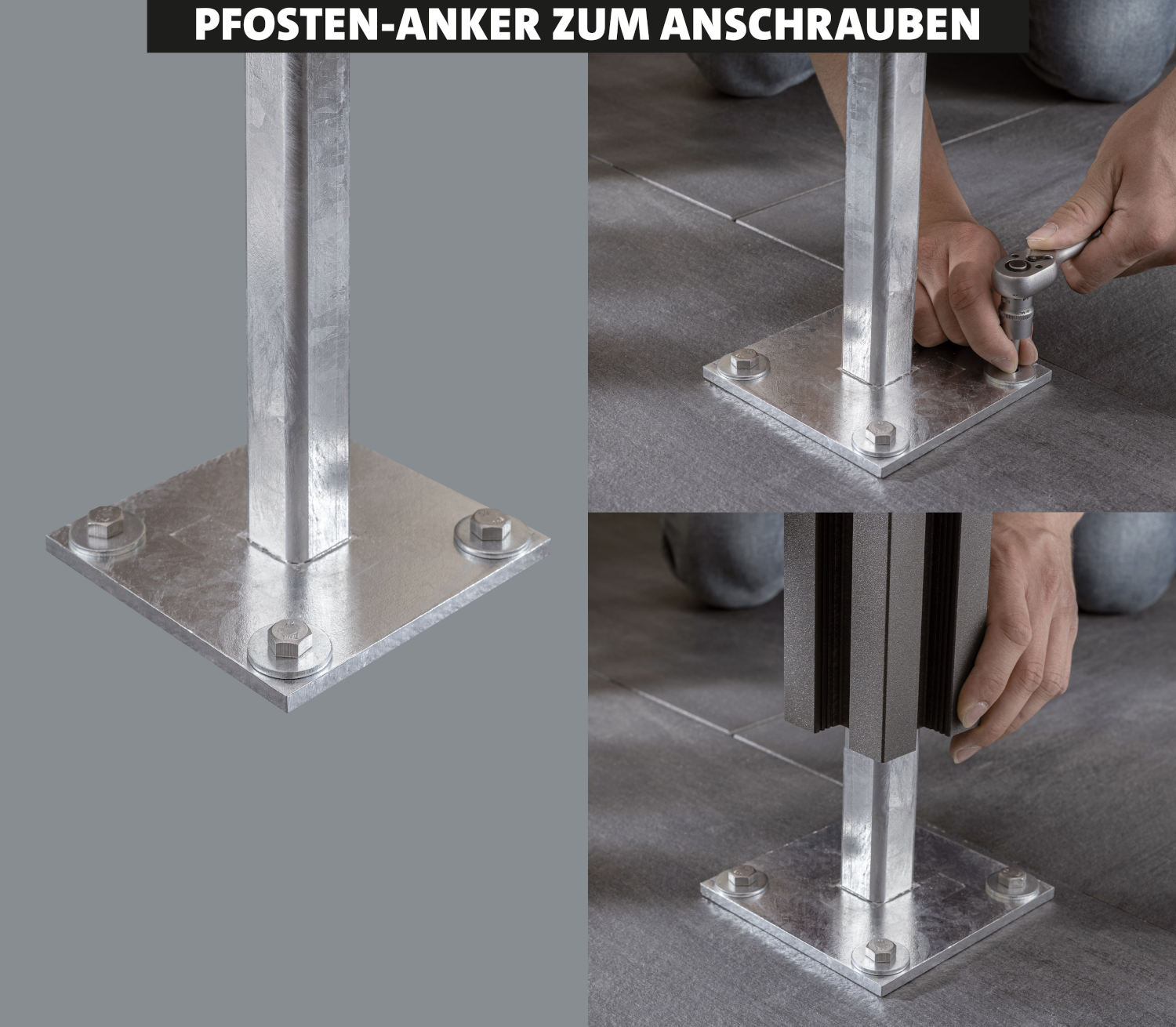 - For screwing onto concrete foundations or base plates