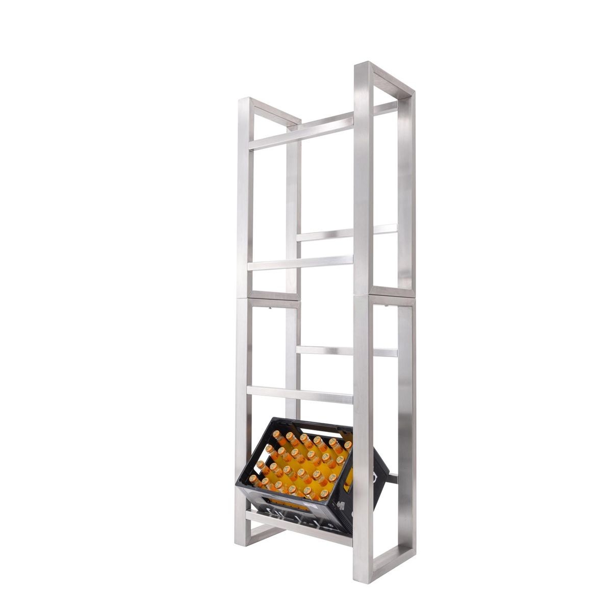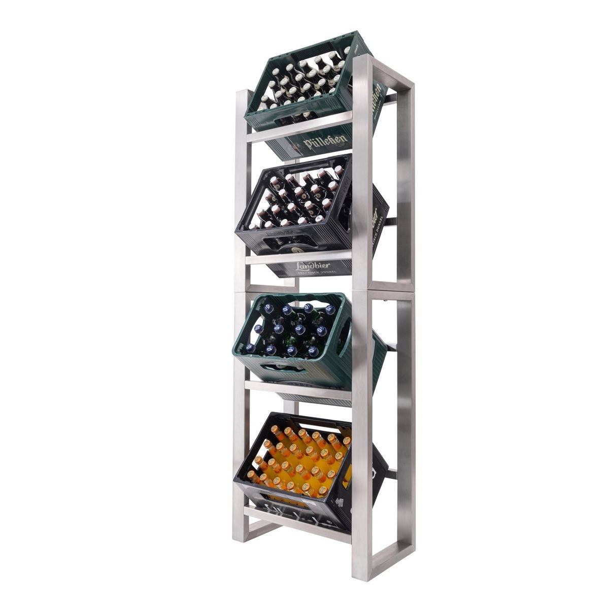 Get your practical and stylish stainless steel rack for four beverage crates now and keep your beverages neatly organized!